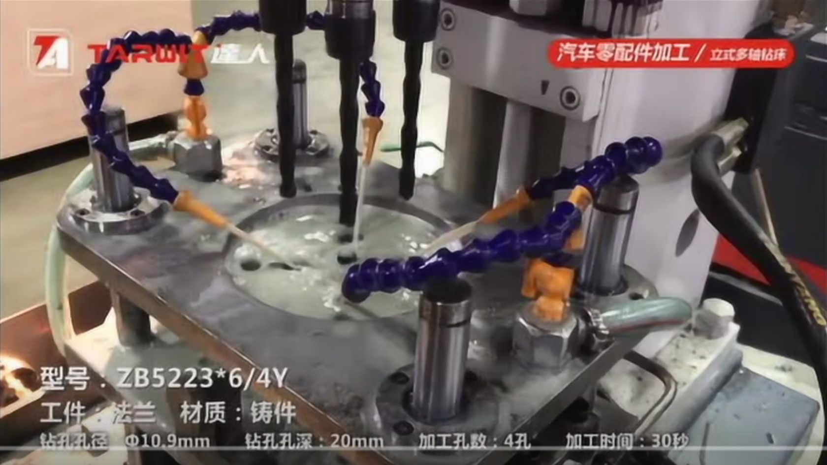 达人多轴钻床为法兰打孔提供更高的加工效率,钻头一次打孔,减少人工并提高加工效率。