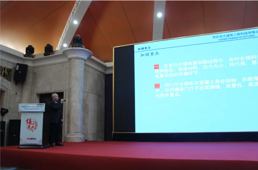 ? ? 在报告环节,陕西建协设计研究院的王耀宗教授就《既有建筑安全鉴定与加固的工作建议及案例》进行了深入剖析:西安圣天建筑工程科技有限公司的张斌强总工则分享了《既有建筑功能改变与结构加固》的实践经验:中国建筑会建筑防水学术委员会的曹征富专家,则就《北京地下水回升对建筑地下防水工程的影响与应对措施》进行了深入探讨。这些报告不仅展示了行业的最新动态,也分享了许多创新技术与实践案例,为与会者提供了宝贵的经验和启示。