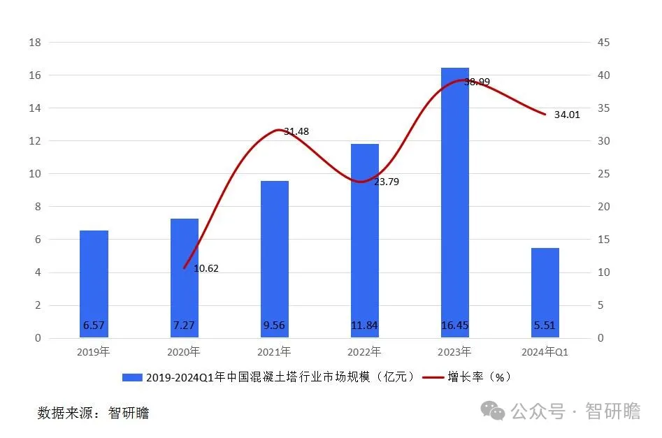 我国混凝土塔行业市场规模和增长率