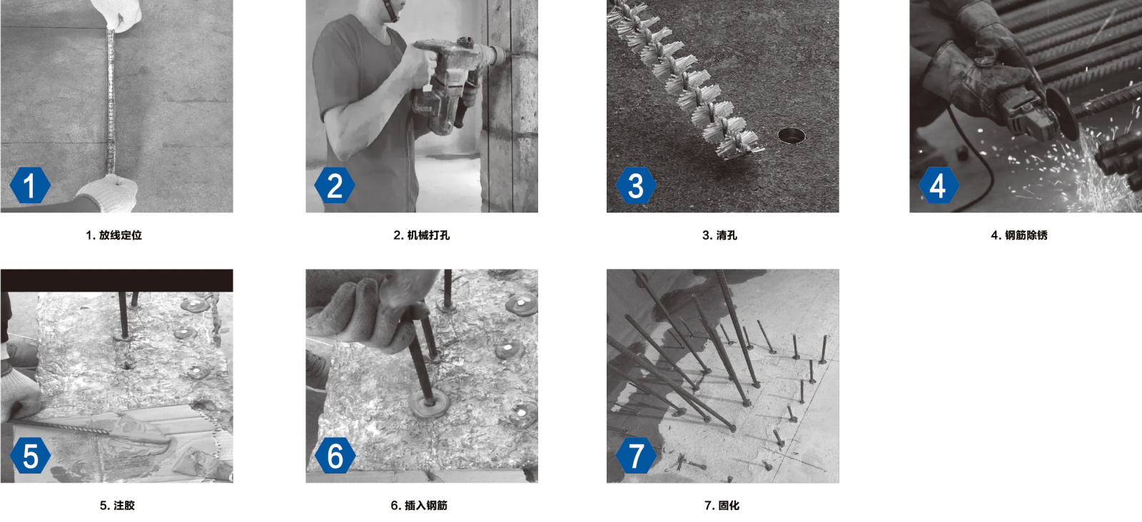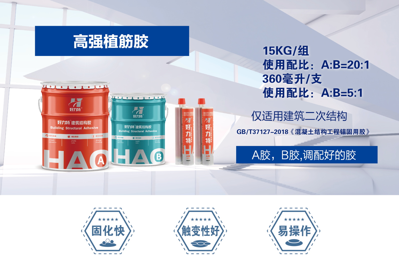 高植筋胶主要原材料为改性环氧树脂,主要适用普通民用建筑临时结构、砖混二次结构等非承重结构使用。